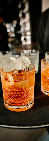 Cocktails Three different cocktails prepared by the bar chef, varying depending on group size and event